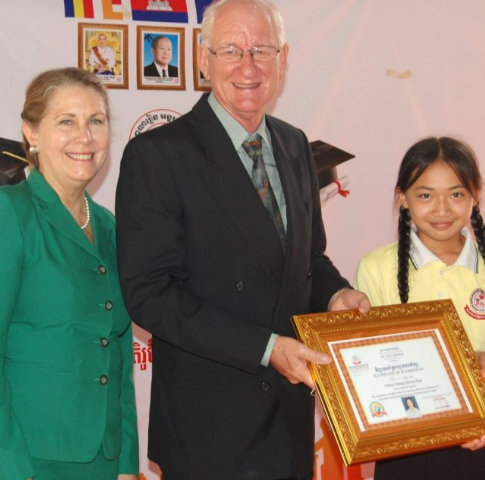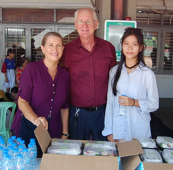 So we told the story of the first Christmas with my big flannelgraph board while everyone listened attentively. Afterwards, I played guitar, while our 6 teens sang a few Christmas carols, that we’d been practicing, much to the elderly’s delight. Then Thida gave a deeper explanation of John 3:16, and what it means to us all that God loved us so much as to send His only Son into the world. It was very moving. Everyone was served a sandwich and a care package of rice, canned fish, cooking oil, soy sauce, towel and soap!